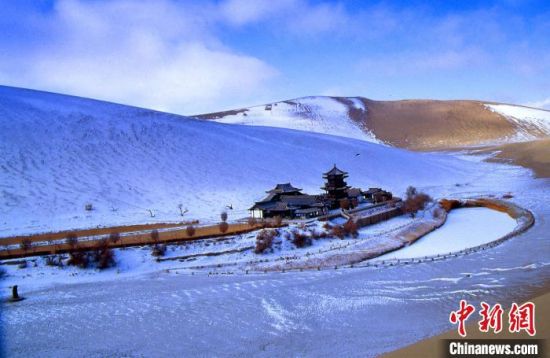 冬天的敦煌月牙泉(資料圖)。甘肅文旅廳 供圖