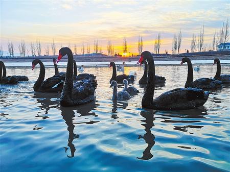 冬日的張掖國(guó)家濕地公園丹頂鶴、黑天鵝、朗德鵝、斑頭雁等沐浴在清晨的陽(yáng)光下。這里良好的生態(tài)環(huán)境吸引了眾多候鳥(niǎo)棲息。通訊員 成 林
