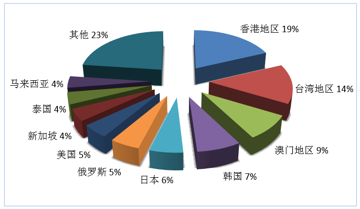 圖1:第三季度入境旅游外聯(lián)人次排名前十位的客源地國家或地區(qū)