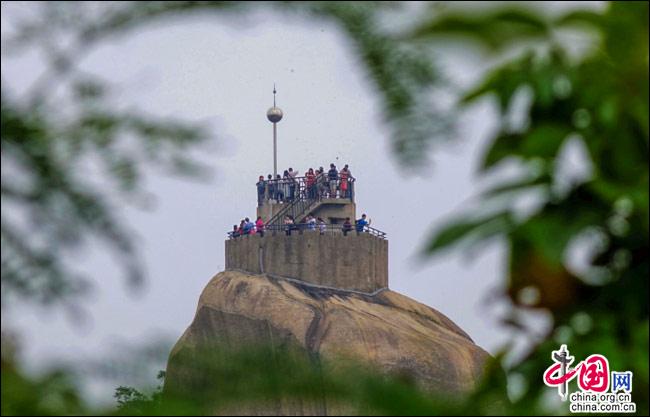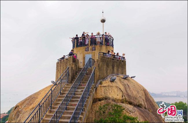 說(shuō)到自然風(fēng)光,便不能不提日光巖——這島上的最高峰。日光巖別名“晃巖”,相傳1641年,鄭成功來(lái)到此地,見(jiàn)此地風(fēng)景勝過(guò)吉林日光山,便把“晃”字拆開(kāi),稱之為“日光巖”。要登臨此巖,一窺日光,便要辛勞走一段山路。其間渾圓的巨石層出不窮,蒼郁的古樹隨處可見(jiàn),更有閩南大厝、名人題字與這些自然風(fēng)景相得益彰。于是游人往往在心曠神怡中,路過(guò)“九夏生寒”“鷺江龍窟”,經(jīng)由“閩海雄風(fēng)”“古避暑洞”,不知不覺(jué)間,來(lái)到巖頂?shù)钠脚_(tái)。立定此處,憑欄遠(yuǎn)望,只見(jiàn)輕靈的云天近在咫尺,島上的屋宇盡收眼簾——別提有多么愜意!難怪有詩(shī)人寫道:“一葉輕舟破霧霾,波濤滾滾此登臺(tái)。日光巖上憑欄望,隔岸清風(fēng)過(guò)海來(lái)。”(陳仁德句)