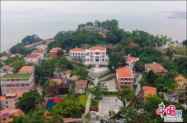 如果有這樣一座島嶼——遠(yuǎn)處是一方寧?kù)o的藍(lán)天,近處是一片幽深的綠樹,藍(lán)與綠之間,是逶迤而去的清水紅磚……極目遠(yuǎn)眺,只見(jiàn)她濃淡相宜、遠(yuǎn)近相安,仿佛一幅肅穆祥和的印象派油畫;細(xì)細(xì)聆聽(tīng),似乎還有一支悠揚(yáng)的鋼琴曲,在伴隨海鷗與濤聲,不時(shí)從畫中飄來(lái)……
