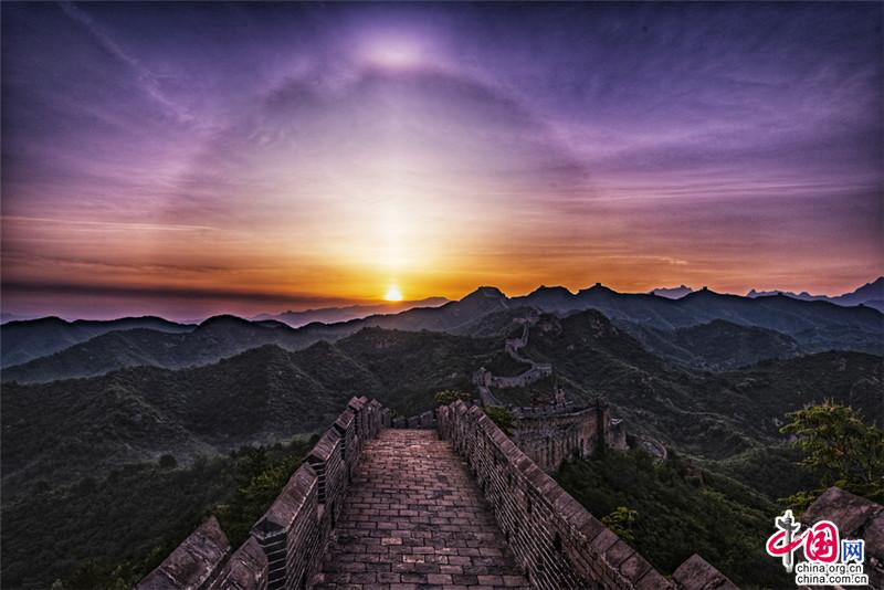 金山嶺長城,仿佛一部鴻篇巨制,光芒萬丈的日出中巨龍飛舞。