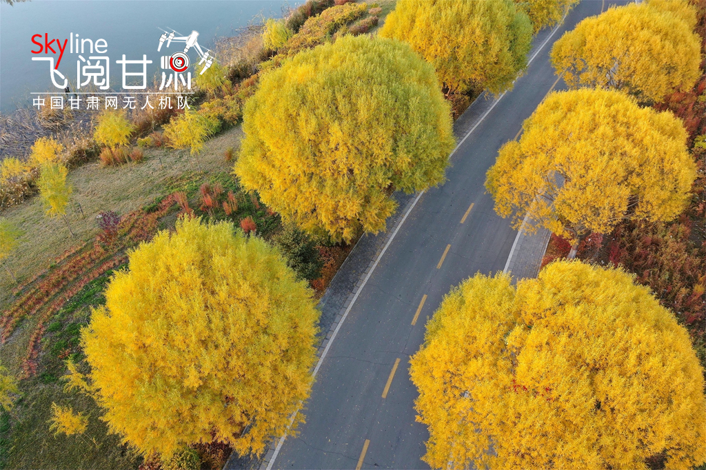 10月22日,甘肅省張掖國家濕地公園內流光溢彩,秋意濃濃,金黃色的饅頭柳引人注目。