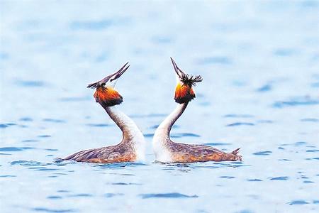 甘肅最常見的是鳳頭鸊鷉,它是全世界20多種鸊鷉中體型最大的,在全省多數(shù)濕地中都能見到它。不過,鳳頭鸊鷉是候鳥,冬天會(huì)南飛,它的族類中體型最小的小鸊鷉則在我省四季可見。