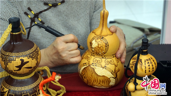 葫蘆烙畫又稱燙畫葫蘆、火筆畫葫蘆,是國家非物質文化遺產。做葫蘆烙畫得用烙鐵當筆,燒熱后在葫蘆表面熨出烙痕作畫。烙畫和葫蘆融為一體,能長久保存,可以作為工藝品收藏。其中,非遺傳承人陶瑞珍的葫蘆烙畫形成了獨特的藝術風格。
