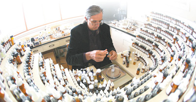 法國一名專業(yè)調香師在配制香水。資料圖片