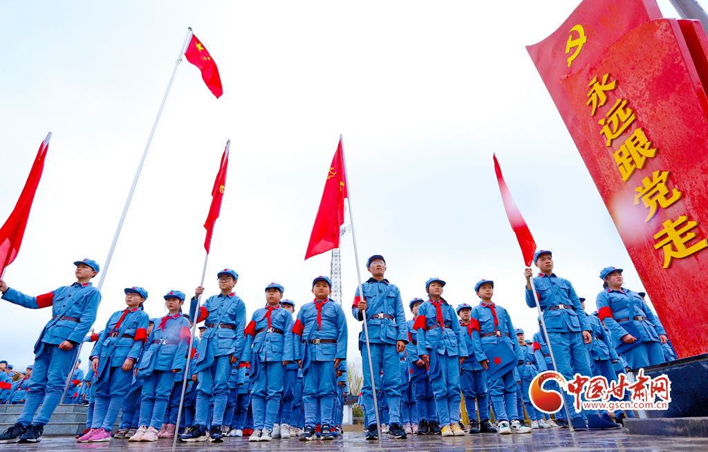 3月31日,甘肅張掖甘州區(qū)龍渠鄉(xiāng)中心學(xué)校的300多名師生宣誓永遠(yuǎn)跟黨走。