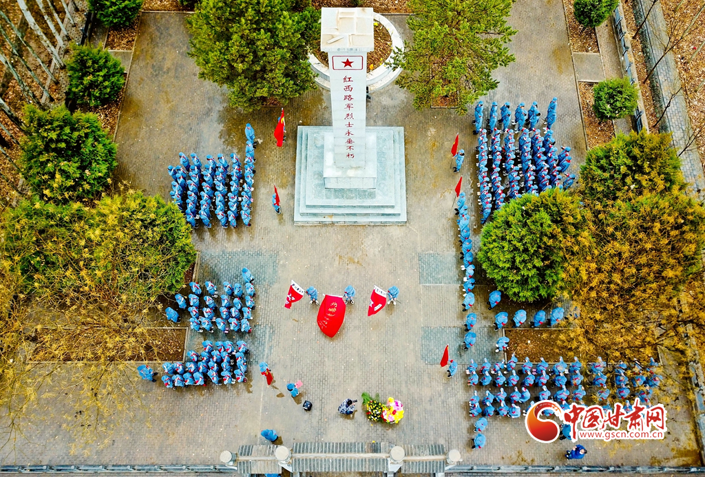 3月31日,甘肅張掖甘州區(qū)龍渠鄉(xiāng)中心學(xué)校的300多名師生在龍渠烈士陵園緬懷革命先烈。