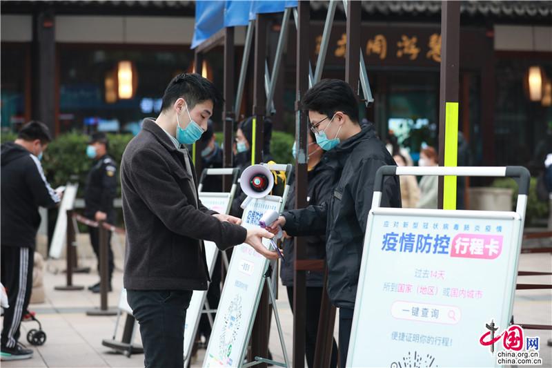 現(xiàn)場引導(dǎo)出示“健康碼”、測體溫,景區(qū)常態(tài)化防疫有條不紊;“周莊怎么玩”旅游目的地平臺提供專屬消費(fèi)體驗(yàn),工作人員耐心解疑答惑,志愿者引導(dǎo)間隔出游,碼頭人員細(xì)心攙扶……