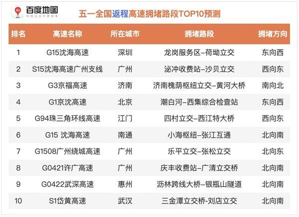 ?。?021年五一假期返程高速擁堵路段TOP10預(yù)測)