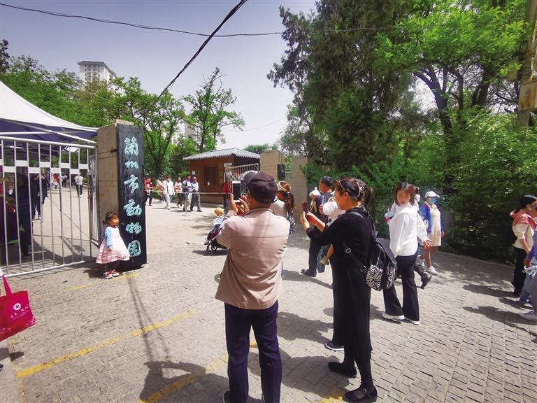 “我要和動(dòng)物園的大門合影” “快來(lái)給我和‘蘭州市動(dòng)物園’的大牌子拍張照”……5月7日10時(shí)許,前往蘭州市動(dòng)物園游玩的市民絡(luò)繹不絕,大門口懸掛著的略顯斑駁的黑底綠字的“蘭州市動(dòng)物園”的門牌,仿佛是最能觸動(dòng)人們記憶的“坐標(biāo)點(diǎn)”,大家排隊(duì)再和它照張相成為進(jìn)園的固定儀式。