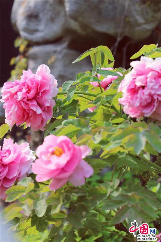 “國(guó)色鮮明舒嫩臉,仙冠重疊剪紅云”。北宋范純?nèi)室?ldquo;仙冠”吐露牡丹之絕艷,即是春日的機(jī)緣促成的繁華與熱烈。重瓣牡丹更是醉馨自然,光灑在其上如透亮的粉晶般耀眼,翠綠有心添一抹“怒”放的生機(jī),無(wú)論深紅淺紅俱是春日的盛情。