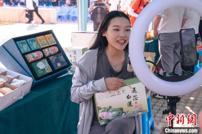 主播現(xiàn)場(chǎng)直播帶貨,銷(xiāo)售建蓮?!±钅宪?nbsp;攝
