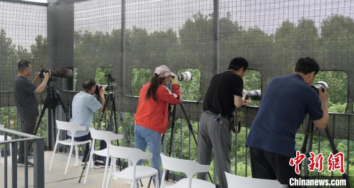 圖為鳥類攝影愛好者在觀鳥平臺上進行拍攝?!∩G锶A 攝