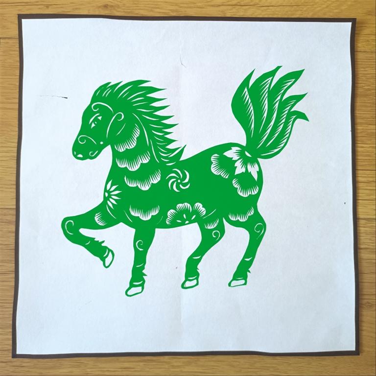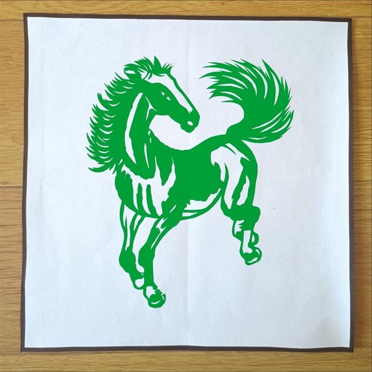 馬作為十二生肖屬相,一直是很重要的剪紙素材,包含著許多美好寓意。吳玲花創(chuàng)作這三匹“綠馬”,也是希望能用剪紙藝術(shù)傳遞祝福,只要大家都能守住“綠碼”,那么此次疫情一定能很快過去。吳玲花巧用諧音,將平安健康的美好祝愿寄托于這三匹“綠馬”之中。