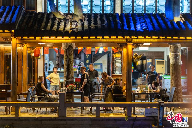 歸來(lái)小鎮(zhèn),夜色燈火閃爍搖曳,廊亭中清風(fēng)肆意流連,明月照進(jìn)街巷里弄,清涼夜周莊,是夏日里的烏托邦。小橋流水與青磚黛瓦交錯(cuò)成景,輕姿漫步看兩岸燈影交錯(cuò);成蔭的綠意里畫著水色繾綣,抬眸皆是神來(lái)之筆。夏夜的煙火人間里,是迷人而慵懶的江南底色。