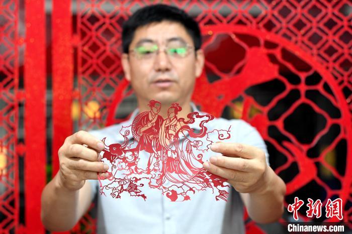 8月4日,是中國傳統(tǒng)節(jié)日七夕節(jié)。河北省衡水市阜城縣剪紙藝人尤金水創(chuàng)作了《牛郎》《織女》《鵲橋相會(huì)》三幅“七夕”剪紙作品,傳遞千年浪漫情。據(jù)介紹,作品采用阜城剪紙陽刻的手法,裝裱后利用立體投影的方式,可以把畫面投影到“月亮”上,既浪漫又神奇。