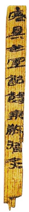 1990年這枚木簡出土于敦煌懸泉置遺址,現(xiàn)藏甘肅簡牘博物館。長7.7厘米、寬0.8厘米、厚0.2厘米。木簡下部殘缺,字跡清楚,簡文作“寒具毋置飴餳乘□醬炙”,其中提到的“飴餳”即兩種糖類之名,該簡文為研究兩漢時(shí)期河西飲食習(xí)俗和制糖史提供了資料。