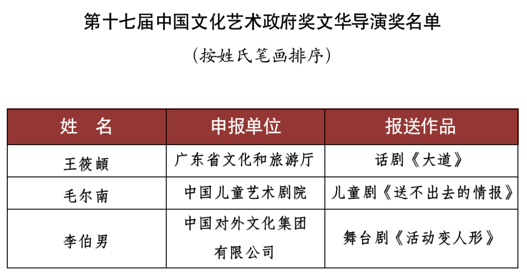 9月15日,文化和旅游部對(duì)外公布了《第十七屆文華獎(jiǎng)獲獎(jiǎng)名單》。舞劇《五星出東方》(北京市文化和旅游局選送)、話劇《塞罕長(zhǎng)歌》(河北省文化和旅游廳選送)、舞蹈詩(shī)劇《只此青綠》--舞繪《千里江山圖》(中國(guó)東方演藝集團(tuán)有限公司選送)等15個(gè)作品獲得第十七屆中國(guó)文化藝術(shù)政府獎(jiǎng)文華大獎(jiǎng)。