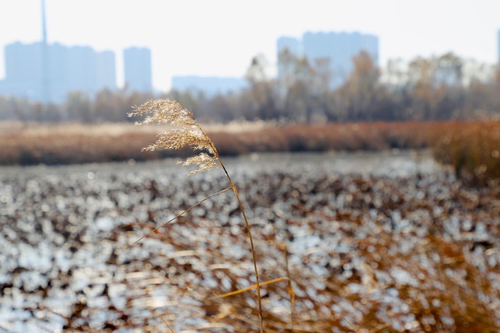立冬時節(jié),登上哈爾濱松浦大橋,在下橋口順臺階而下,映入眼簾的是大片金黃色的蘆葦蕩,白色蘆花點綴其中迎風(fēng)招展,透過澄澈的水面依稀可見水草和水藻。在位于哈爾濱市松花江北面的阿勒錦島國家濕地公園,不少市民來這里徒步、騎行、健身,公園每年接待游客量超40萬人次。