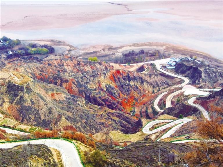 初冬時(shí)節(jié)的劉家峽庫(kù)區(qū)沿岸,盤山公路、丹霞地貌與碧水構(gòu)成了一幅多彩畫卷
