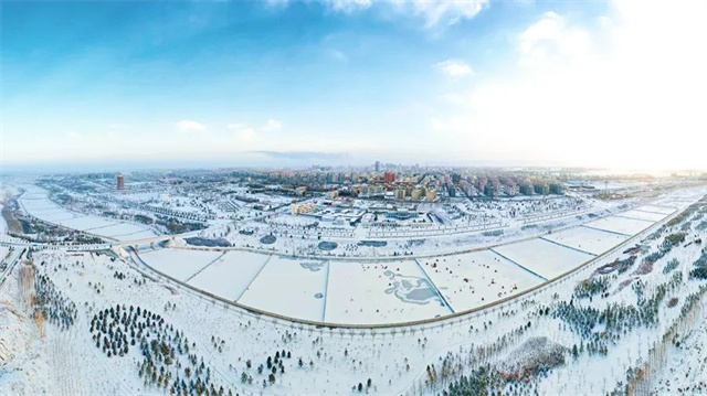 民樂縣縣城雪景。陳思宏攝