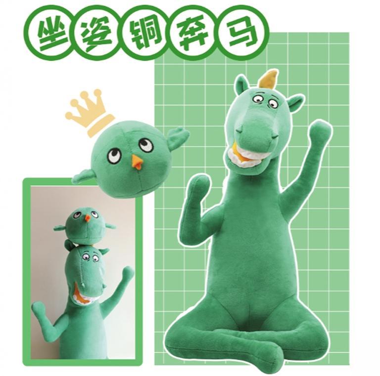 銅奔馬毛絨玩具有“一馬當(dāng)先銅奔馬”站姿款和“馬到成功銅奔馬”奔跑款兩種款式。兩款玩偶形象萌趣立體,表情俏皮生動,做工精致細(xì)膩,手感柔軟舒適有彈性,深得大家喜愛。它的創(chuàng)意原型來自甘肅省博物館的鎮(zhèn)館之寶——銅奔馬。銅奔馬出土于甘肅省武威市雷臺漢墓,距今已有2000多年的歷史,是中國旅游標(biāo)志物,也是古絲綢之路最具代表性的歷史文物載體。