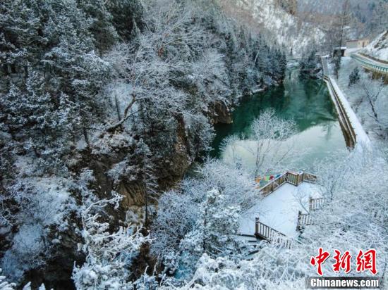 航拍甘南大峪溝雪景,銀裝素裹美如畫。