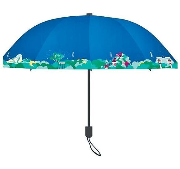 畫(huà)面是對(duì)天水文化的整合轉(zhuǎn)譯。靜謐的深藍(lán)夜色宛如舒緩溫柔的吟唱,點(diǎn)醒具有暗語(yǔ)的想象。連綿起伏的綠影又將目不暇接的八美之景串聯(lián)起墜于傘邊沿,呈現(xiàn)一種清新淡雅的格調(diào)。四字榜題作為光影與畫(huà)面間的調(diào)和劑潤(rùn)化了視覺(jué)美感,使空間溢滿(mǎn)文人逸趣。簡(jiǎn)潔平穩(wěn)的畫(huà)卷里隱含古雅山水的形象,靈動(dòng)漂浮的畫(huà)卷里創(chuàng)立起意蘊(yùn)美學(xué)。