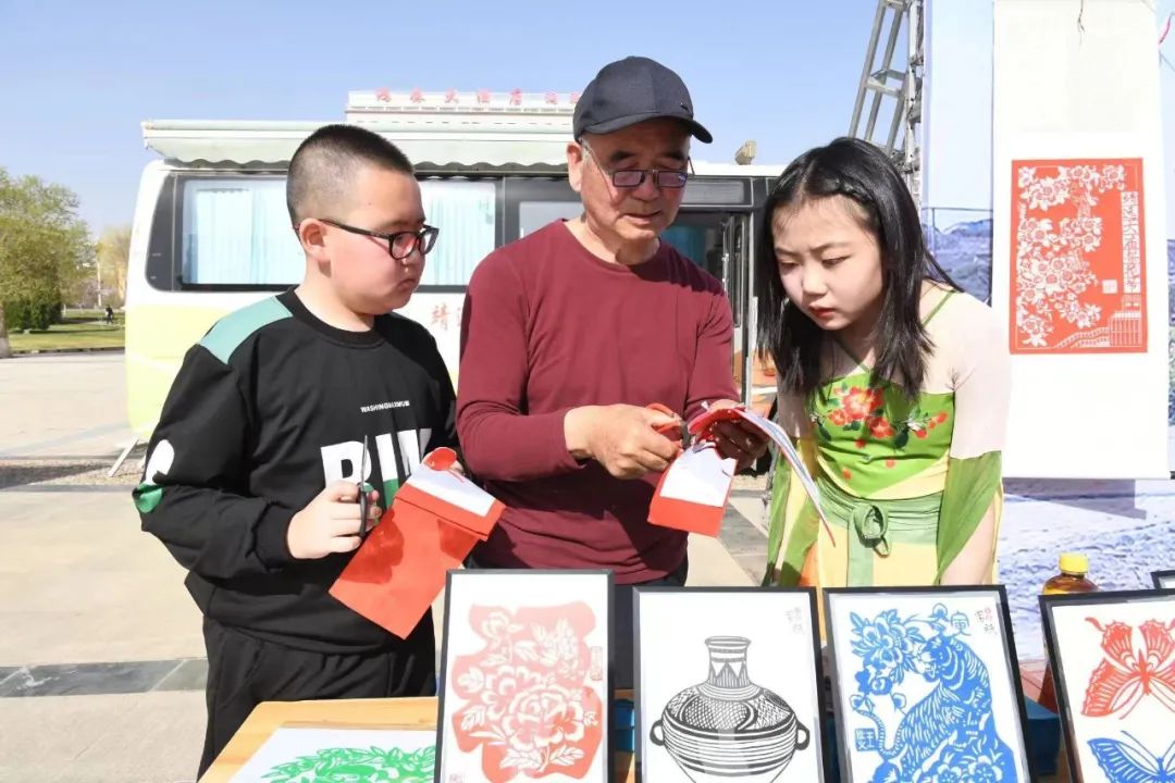 市級(jí)非遺保護(hù)傳承項(xiàng)目靖遠(yuǎn)剪紙傳承人王世義正在教小學(xué)生剪紙。喬麗霞 攝