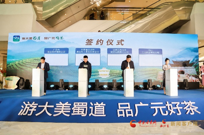 活動現(xiàn)場,兩地多家企業(yè)簽訂戰(zhàn)略合作協(xié)議,多家旅行社共同開啟“游大美蜀道 品廣元好茶”旅游線路產(chǎn)品上架銷售儀式。