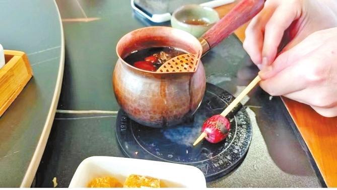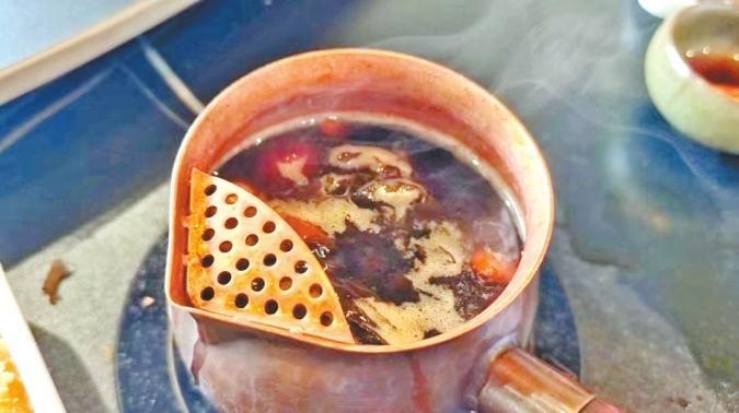“‘茶圣’陸羽的《茶經(jīng)·五之煮》記載,煮茶的時(shí)候會(huì)放蔥、姜、棗、橘皮、茱萸、薄荷等佐料,所以現(xiàn)在罐罐茶所添加的配料,如紅棗、枸杞、桂圓、葡萄干、菊花、冰糖等,其實(shí)就是最原始的煮茶法的延續(xù)。”唐陳虓說(shuō)。