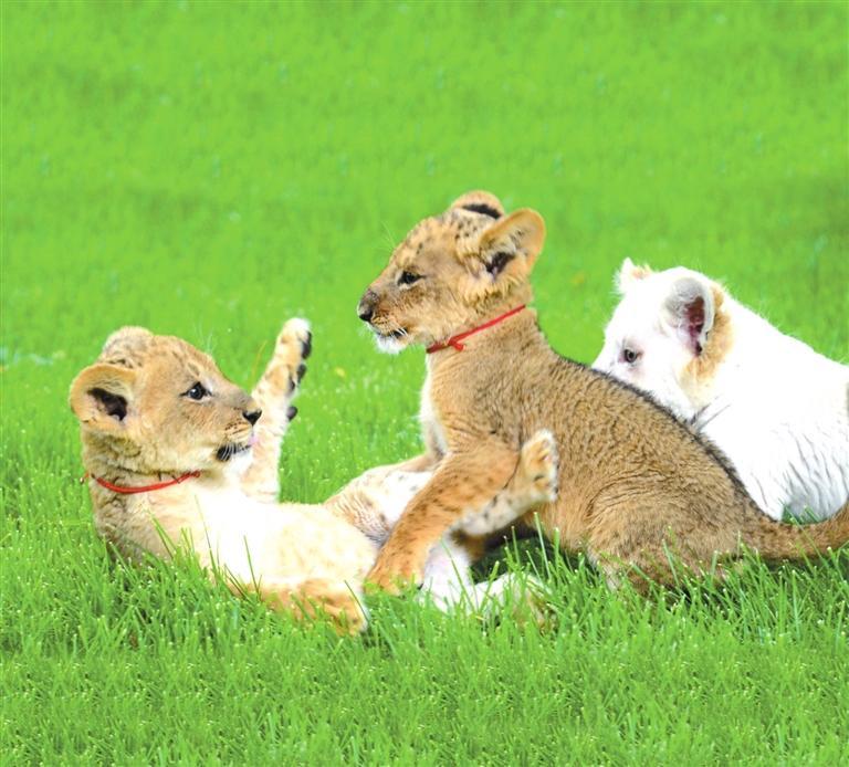 “小黃”“小花”“小算盤”“小白”是四只非洲獅,它們活潑健壯,愛跑愛跳,看上去奶兇奶兇的。