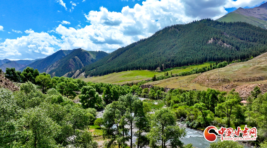 6月29日,在祁連山國家公園甘肅省張掖市肅南裕固族自治縣大河鄉(xiāng)段,藍天白云下,巍峨壯麗的祁連山蒼松翠柏,水光粼粼,構(gòu)成一幅美麗的畫卷。