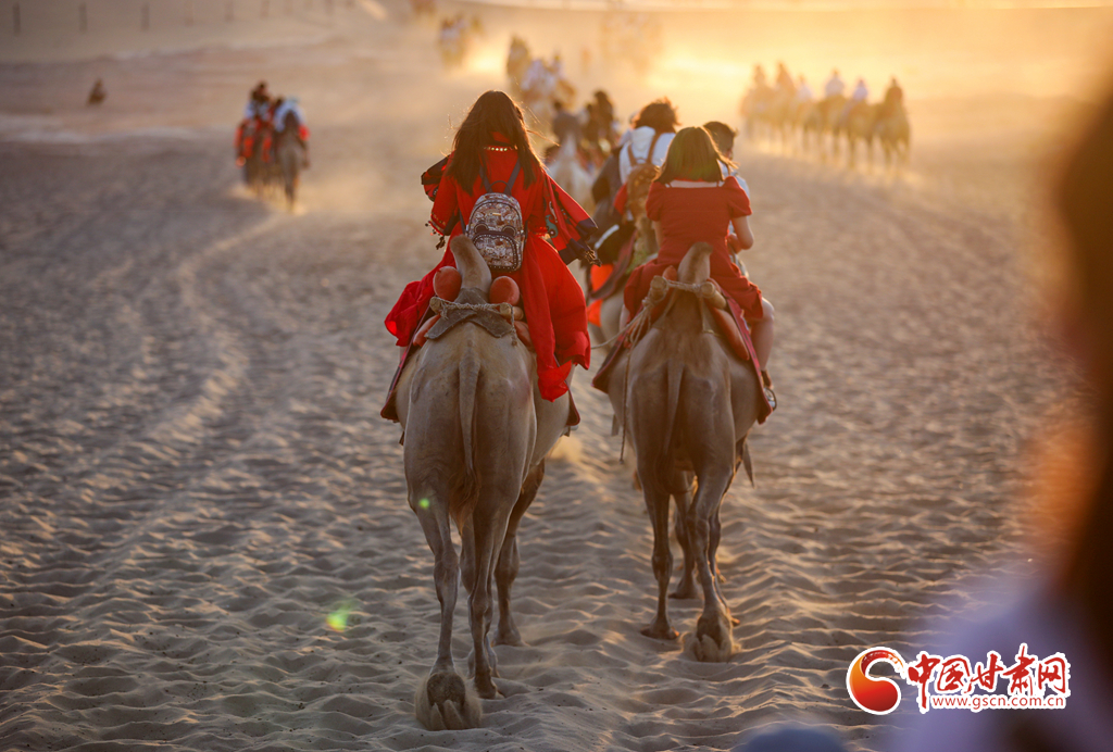 【隴拍客】敦煌駱駝排隊(duì)“上班” 千年絲路令游客“神往”
