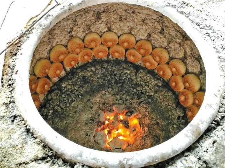 清朝志書(shū)提到在新疆,人們“以餅為常食,大徑尺余。用土塊砌一深窟,內(nèi)用細(xì)泥抹光,將窟燒紅,餅擦鹽水,貼在窟內(nèi),頃刻而熟。貧者惟食此,飲冷水而已。富者用糖油和面,煎烙為餅,亦有小如象棋子大者”。