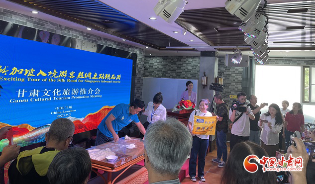 中國甘肅網9月4日訊(西北角·中國甘肅網記者 任磊)在第六屆絲綢之路(敦煌)國際文化博覽會盛大開幕前夕,9月3日,甘肅省文化和旅游廳為甘肅近年來第一個新加坡百人入境旅游團,舉行“絲綢之路精品游”專場文化旅游推介會和歡迎儀式。