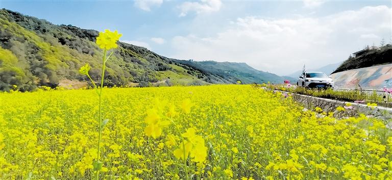 金秋時節(jié),沿太子山旅游風(fēng)情大通道臨夏縣段景色如詩如畫,油菜花、墻體彩繪與遠(yuǎn)山、藍(lán)天白云相映成輝,令人賞心悅目。