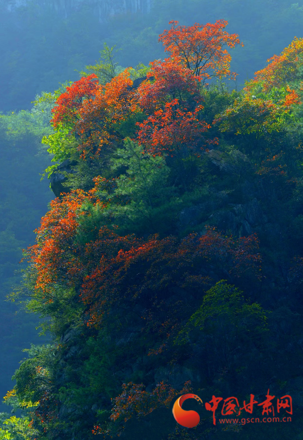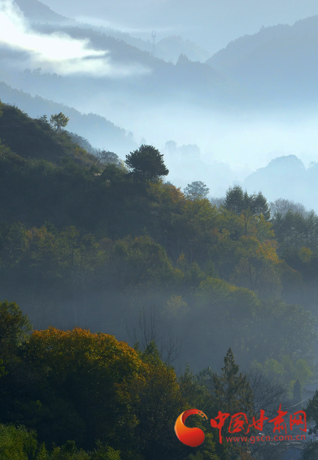 進(jìn)入十月,康縣的秋景漸入佳境,秋日的暖陽透過薄霧灑在五彩斑斕的山脊上,滿山層林盡染、渾然一體,好似一幅油彩畫。