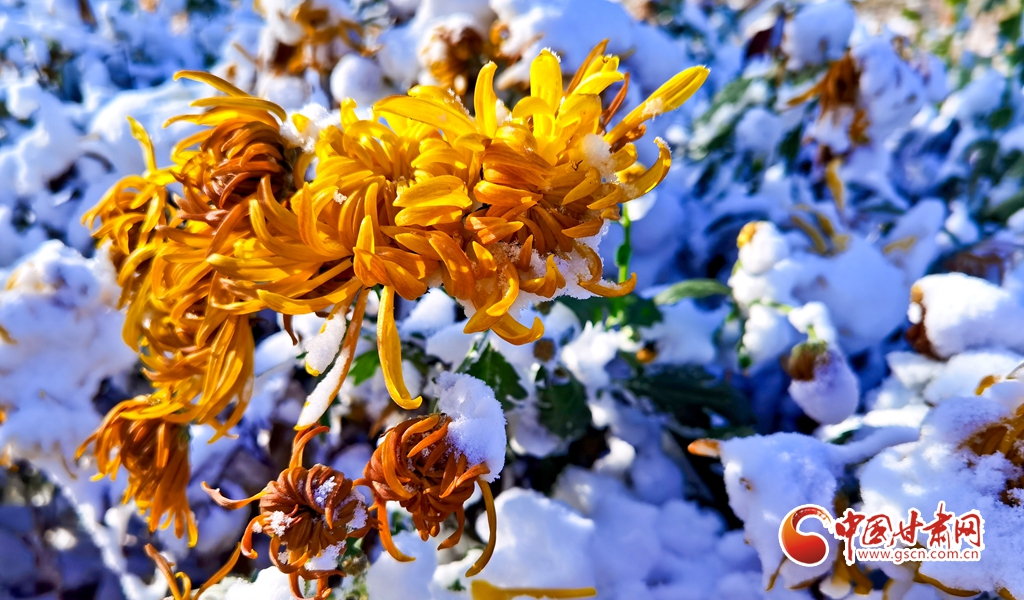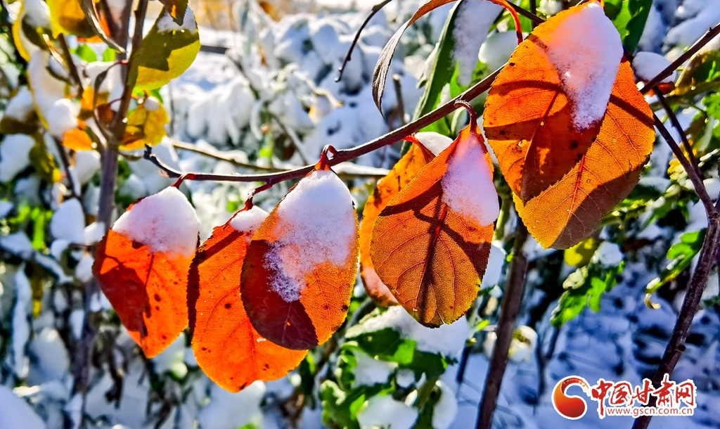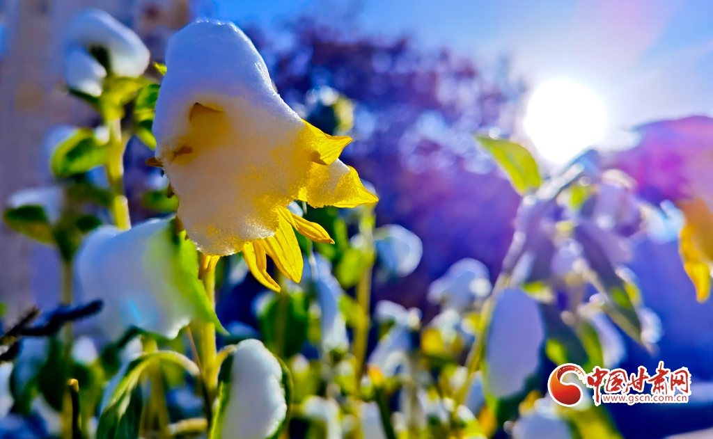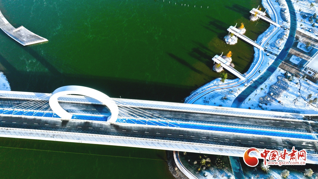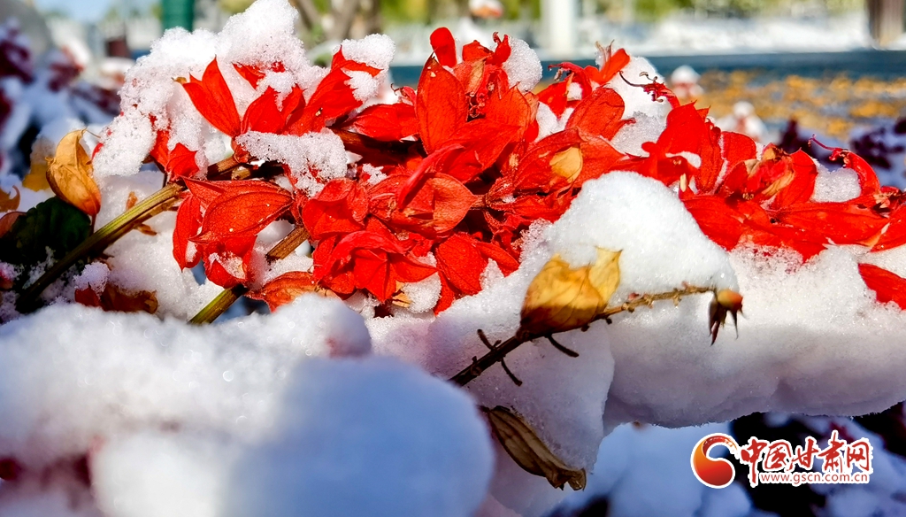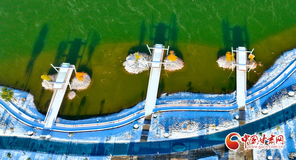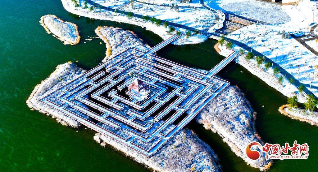 11月5日,受寒潮侵襲,甘肅省張掖市出現降溫降雪天氣。雪后初晴,張掖市中央文化公園內,銀裝素裹,景色迷人,宛若畫卷。