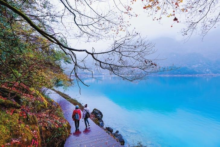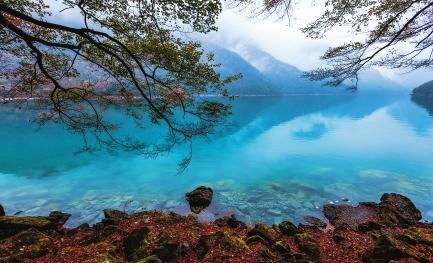 初冬時(shí)節(jié),文縣天池國(guó)家森林公園尚未褪去秋裝。遠(yuǎn)山峰巒疊嶂,層林色彩斑斕,近水沉斂如鏡,林木倒映其間。黃葉悄落,波紋漣漪,云霧時(shí)起,水霧彌漫。初冬的天池,靜美如畫卷。