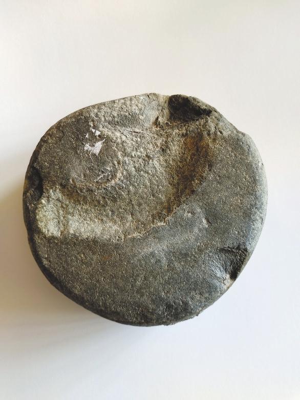 齊家文化的“盤狀石器”除“敲砸器”以外,還有一點比較特殊,其雙面分別琢制有日紋和月紋。目前所知,這類“盤狀石器”只在齊家文化遺存中出現(xiàn),是齊家文化石器的特有器型,石質(zhì)大多為礫石、河礫石。這種齊家文化特有的琢紋盤狀石器,學界尚未有統(tǒng)一命名,通常所見為:“圓形見手窩敲砸器”“刻符石”“刻符石器”。民間俗稱為:“練功石”“日月石”“星月石器”等。