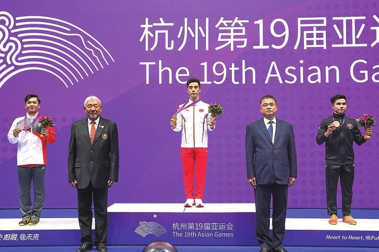 常志昭(中)在杭州亞運(yùn)會領(lǐng)獎(jiǎng)臺上。