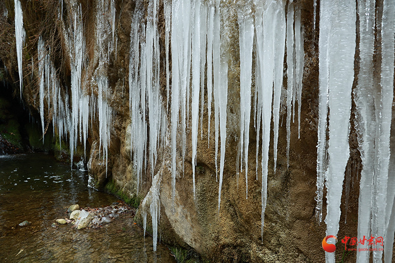 近日,在隴南市康縣王壩鎮(zhèn),由于受低溫寒潮天氣的影響,王壩鎮(zhèn)何家莊風(fēng)景區(qū)至大水溝村的大峽谷現(xiàn)冰瀑景觀,冰瀑形狀各異、冰掛晶瑩剔透、壯觀奇美,成為冬日里一道亮麗風(fēng)景。