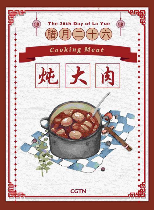 臘月二十六這天,許多家庭通常都會燉豬肉和吃豬肉。不養(yǎng)豬的家庭會去當?shù)丶匈I一大塊肉。在過去的農(nóng)業(yè)社會,人們只有在春節(jié)才能吃上肉。吃肉也代表著一年中最盛大的慶?;顒?。