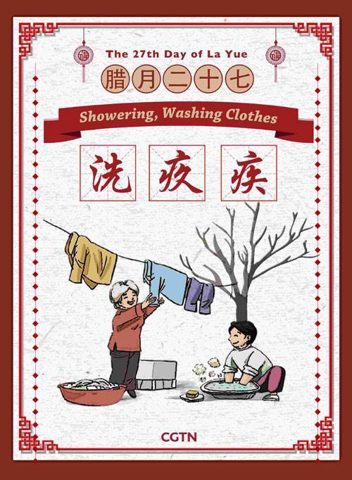 臘月二十七,人們會洗衣、沐浴或洗澡。這代表著洗掉過去一年所有的晦氣,讓來年百病不生。
