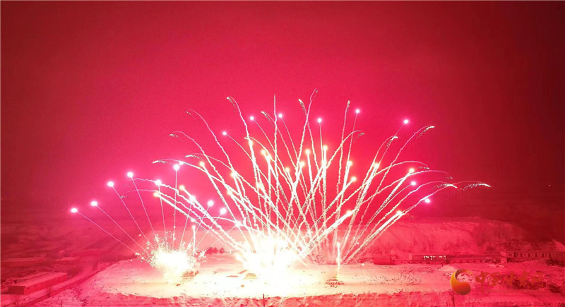 以焰火為筆,以星空作畫。晚8時許,焰火在夜幕中徐徐點亮,一朵朵、一束束焰火騰空而起,直沖云霄、綻放出耀眼的光芒。洶涌澎湃的銀河瀑布如金似玉從天庭倒掛,飛流而下,層層疊疊。依次從地面升起的各種禮花,如明珠,似繁星在空中閃爍,綻放出一幅幅絢麗壯觀、色彩繽紛的美麗畫卷。璀璨絢爛的煙花與小城的夜景、群眾的歡聲笑語、相機的快門聲交相輝映,大家都沉浸于濃濃“年味”和新春喜悅中。