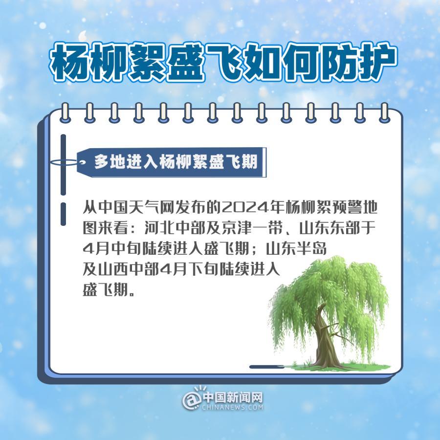 從中國天氣網(wǎng)發(fā)布的2024年楊柳絮預(yù)警地圖來看:河北中部及京津一帶、山東東部于4月中旬陸續(xù)進入盛飛期;山東半島及山西中部4月下旬陸續(xù)進入盛飛期。楊柳絮都有哪些危害?公眾日常如何做好防護?