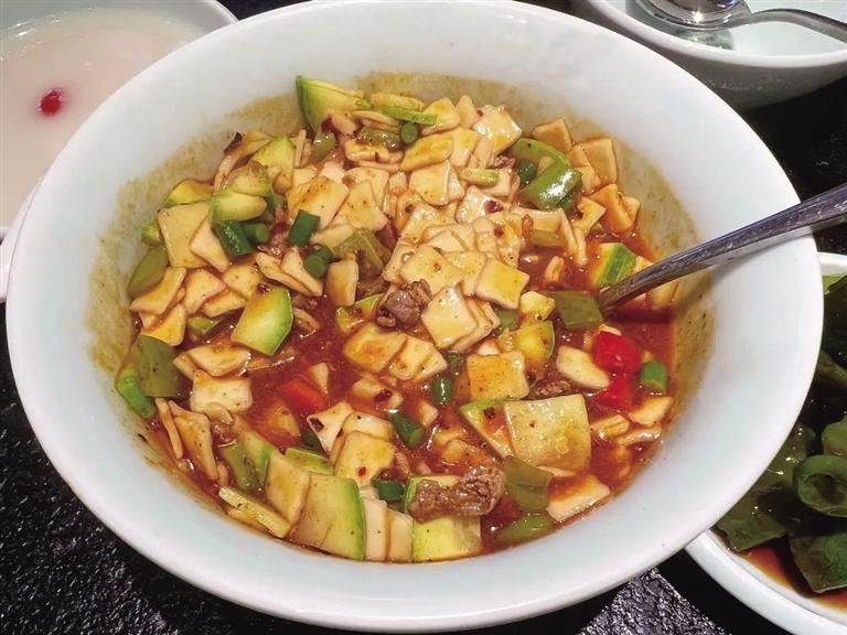 有固態(tài)和液態(tài)兩種形式,酸甜麻辣搭配油潑辣子,直接擊穿饑餓。蘭州炒面片,面片也是蘭州人喜歡的家常面之一,面片分帶湯和不帶湯的,不帶湯的稱炒面片,蘭州炒面片也是一道風(fēng)味獨(dú)特的美食,無(wú)論是大街小巷還是酒店飯館都有它的一席之地,面片炒的柔韌筋道,番茄炒出的湯汁兒酸酸甜甜,多種蔬菜炒出的營(yíng)養(yǎng)美味,秘制油潑辣子的香,酸甜麻辣香都集齊了,再搭配上筋道的牛腱子肉、虎皮辣椒,麻辣香美可謂一絕。