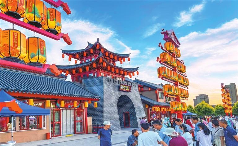 夏日的傍晚,這里格外熱鬧。步入巷內,穿過仿古牌坊,行走在青石板路上,經過新中式仿古的巷子,寬敞的街道兩邊都是仿古的建筑,曲徑通幽處,美食坊,手工作坊,酒吧街,一字兒鋪排開,小攤上當地自制的山楂糕、農民自己種的各種蔬菜、自制的各種小工具、精美小籮筐、葫蘆瓢等好多物品勾起了兒時的回憶。